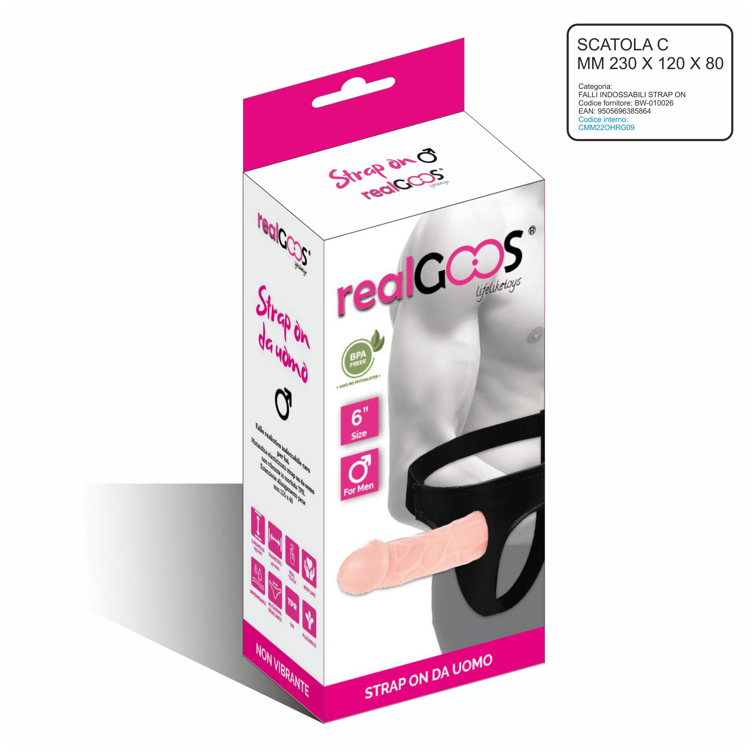 Il Fallo realistico indossabile cavo per lui della linea realGOOS® è uno strap-on non vibrante di dimensioni 155 X 40mm in morbido TPR.